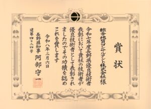 「長野県優良技術者表彰」を受賞しました!!New!!